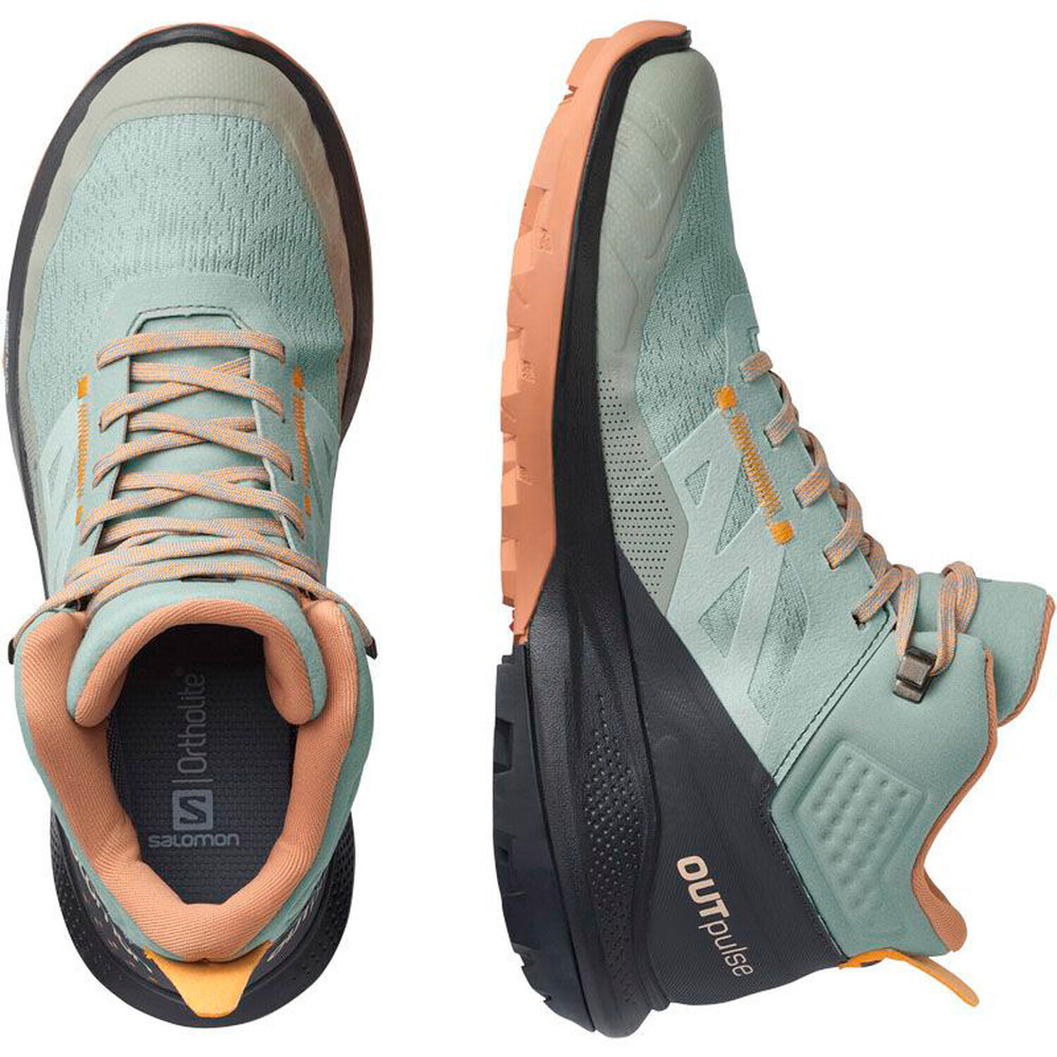 Salomon Outpulse Mid GTX: Smooth Ride and Energy The Outpulse Mid GTX brings running shoe technology to the world of hiking. With a combination of Fuze Surge foam and an Energy Blade, they deliver exceptional cushioning and energy return, making every stride light and dynamic. This is the perfect option for those looking for comfort and a smooth ride over long distances.